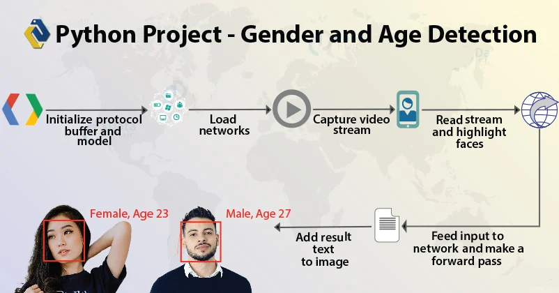 This is an interesting data science project with Python. Using just one image, you’ll learn to predict the gender and age range of an individual. In this, we introduce you to Computer Vision and its principles. We’ll build a Convolutional Neural Network and use models trained by Tal Hassner and Gil Levi for the Adience dataset. We’ll use some .pb, .pbtxt, .prototxt, and .caffemodel files along the way.
