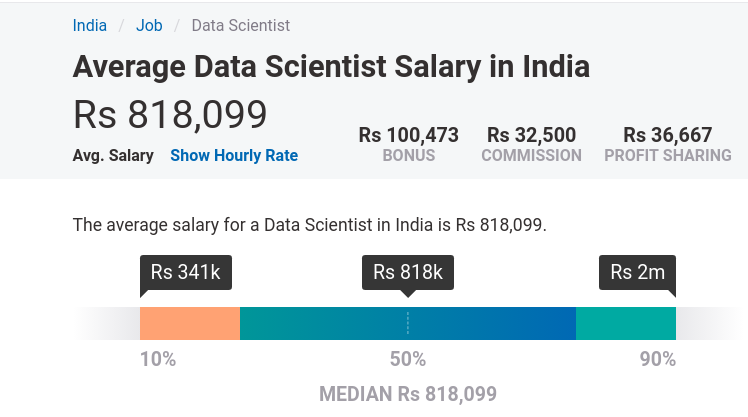 Before applying for any job, we first check the salary figures associated with it. Here we are talking about data scientist job which is the most popular one. Everyone who is interested in this must want to know the salary figures of a data scientist.