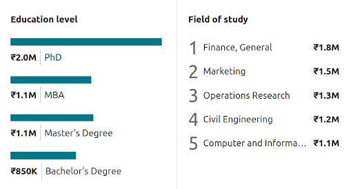 According to a survey carried out by Linkedin, a Ph.D. degree can earn you the highest package in data science. This is followed by a Master’s Degree. Therefore, it is recommended that you have an advanced degree. Furthermore, the field of your study also plays some role in determining salary.