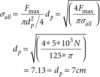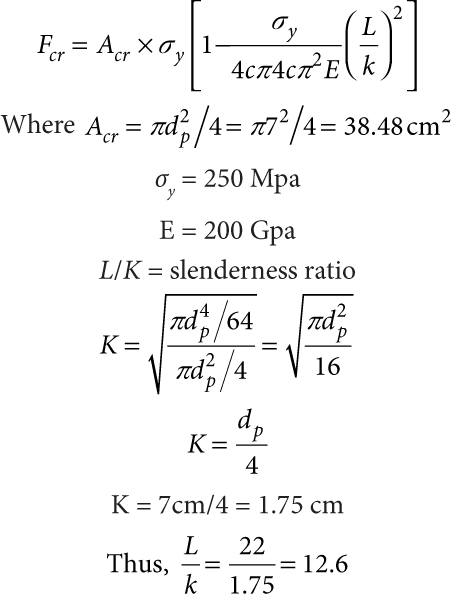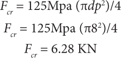 125 Mpa = Fcr/((πdp2)/4) Where dpispiston diameter Fcr =critical load