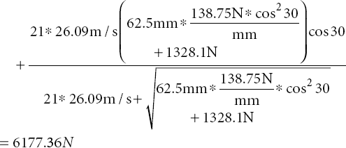 ϕN = normal pressure angle = tan-1(tanϕ*cosα) = tan-1(tan20°*cos30°) = 17.5°
