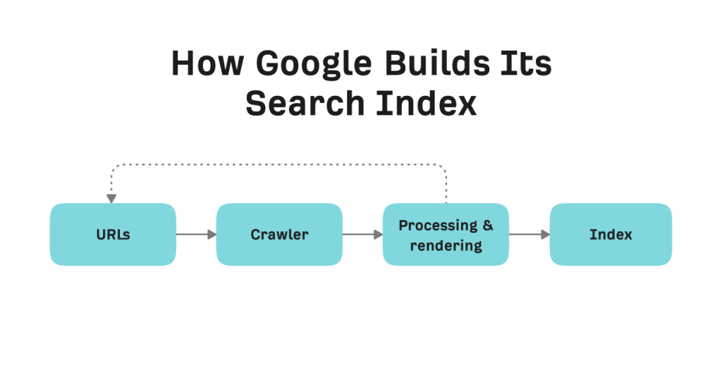 Each search engine has its own process for building a search index. Below is a simplified version of the process Google uses.