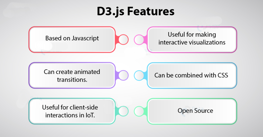 Another powerful feature of D3.js is the usage of animated transitions. D3.js makes documents dynamic by allowing updates on the client side and actively using the change in data to reflect visualizations on the browser.