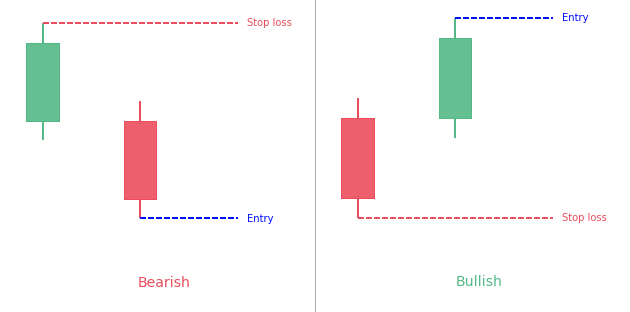 - The second candle has to be negative, and open below the open of the previous candle